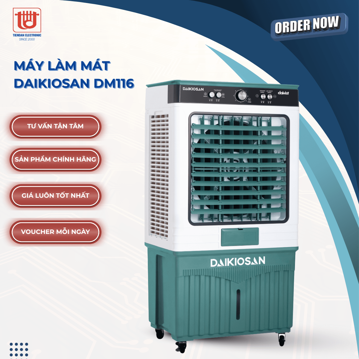 Quạt điều hòa (máy làm mát) Daikiosan DM116 hứa hẹn mang đến cho bạn một không gian sống trong lành, mát mẻ và thoải mái.