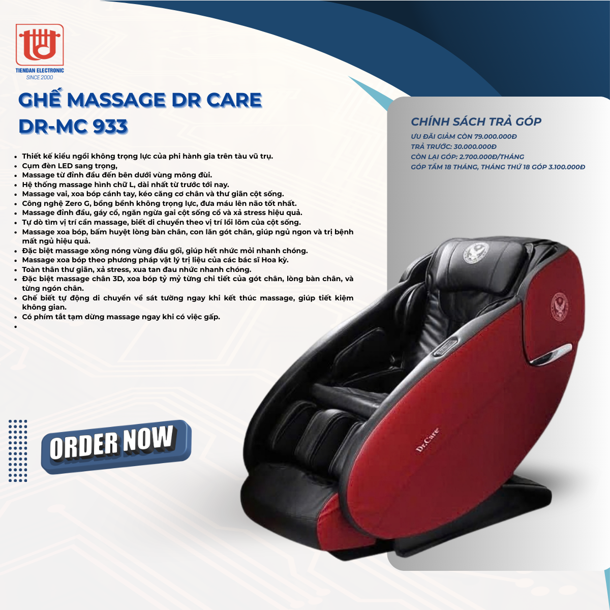 - Có ghế massage Dr.Care – là có Bác sĩ trị liệu của Hoa Kỳ tại nhà.