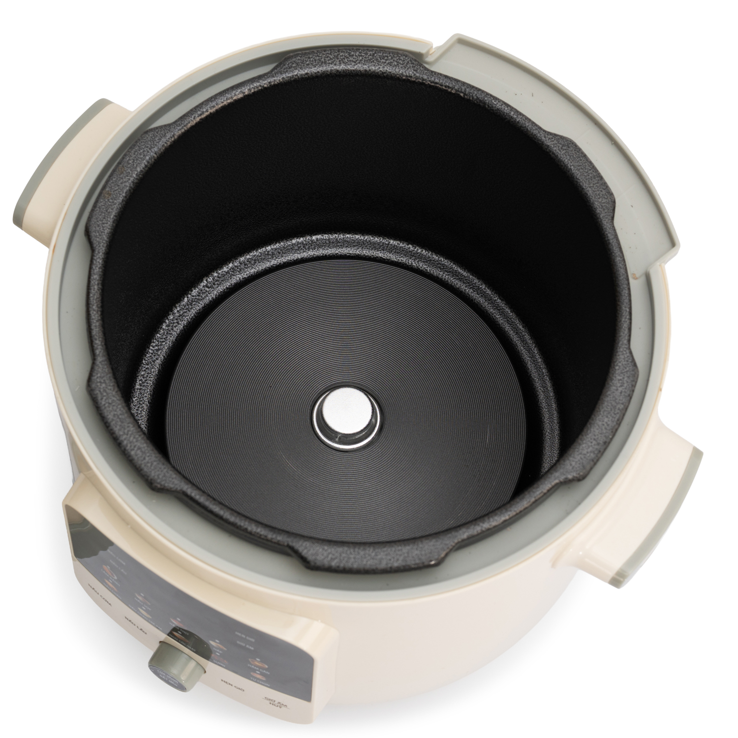 Nồi được trang bị bảng điều khiển đa chức năng kết hợp nút xoay cơ học và cảm ứng điện tử hiện đại, giúp thao tác nhanh chóng, chính xác. Nút xả áp độc lập cho phép người dùng chủ động kiểm soát áp suất trong quá trình nấu.