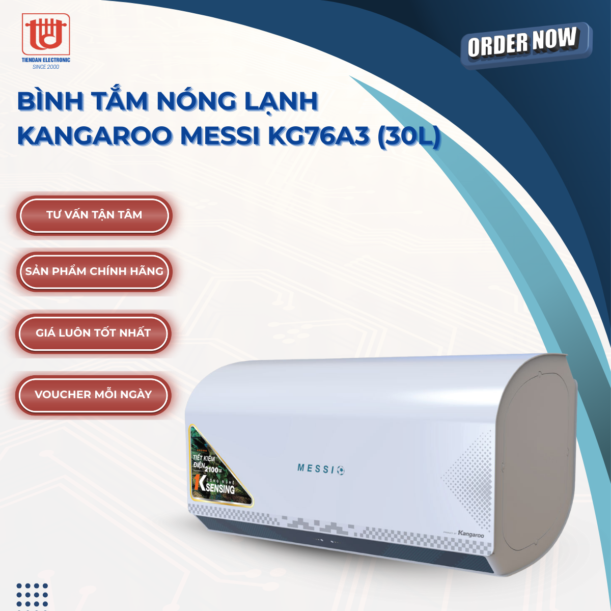 Với hàng loạt ưu điểm cả về thiết kế lẫn công nghệ, tính năng mà chiếc bình nóng lạnh gián tiếp Kangaroo Messi KG76A3 30 lít này dễ dàng đáp ứng nhu cầu sử dụng đa dạng cho nhiều gia đình, văn phòng quy mô nhỏ...