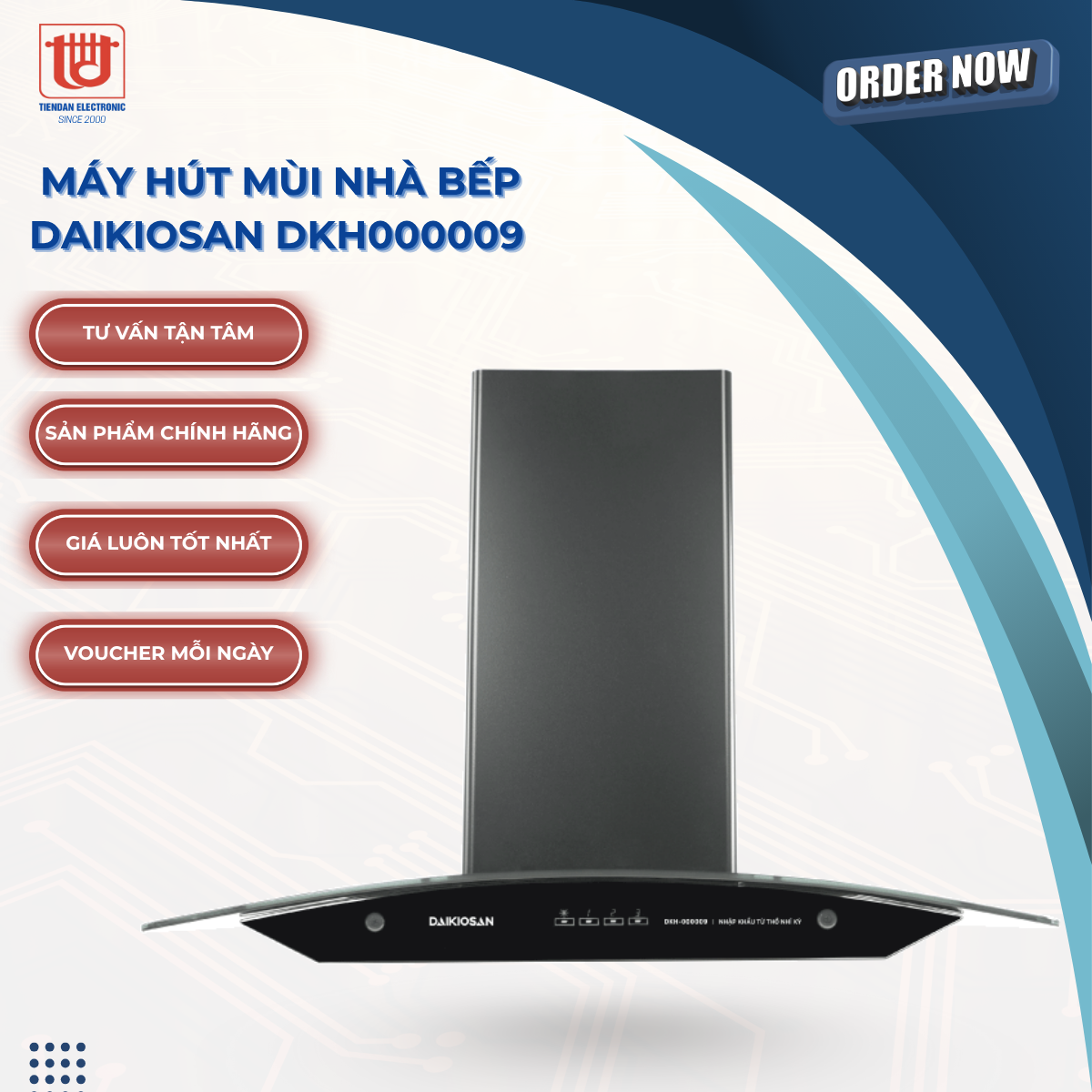 Nhờ thiết kế sang trọng, chất lượng đẳng cấp hàng đầu Châu Âu, Máy hút mùi Daikiosan DKH-000009 đã được bà nội trợ Việt tin dùng. Sản phẩm có khả năng hút mọi mùi khó chịu, độc hại ra khỏi gian bếp và thải ra ngoài ra qua đường ống gắn trên trần tường và hấp thụ vào bộ lọc than hoạt tính, trả lại cho gian bếp bầu không khí trong lành, bảo vệ sức khỏe cho cả gia đình.