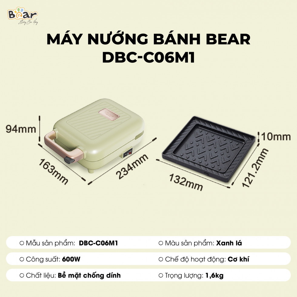 Nếu bình thường bạn hay vì vội vã đi làm mà không có thời gian ăn sáng hoặc ăn đồ ở ngoài không đảm bảo thì máy kẹp nướng bánh mì Bear chính là vị cứu tinh của bạn đấy nhé. Với sản phẩm này, bạn chỉ cần mất 3 phút để có một chiếc bánh sandwich thơm ngon, đầy đặn. Không chỉ nướng bánh mì, C06M1 còn chiên được cả trứng, xúc xích, pate,...vô cùng đơn giản.