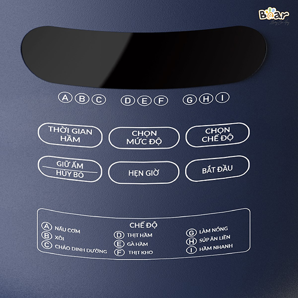 Bảng điều khiển của nồi áp suất điện đa năng Bear YLB-A50M1 hoàn toàn bằng tiếng Việt, giúp bạn có thể dễ dàng sử dụng mà không gặp khó khăn. Với chỉ dẫn kỹ càng được in ngay trên thân máy, bạn chỉ đơn giản là bấm nút, chọn chế độ cần dùng là đợi, món ăn thơm ngon sẽ hoàn thành nhanh chóng khiến bạn hài lòng.