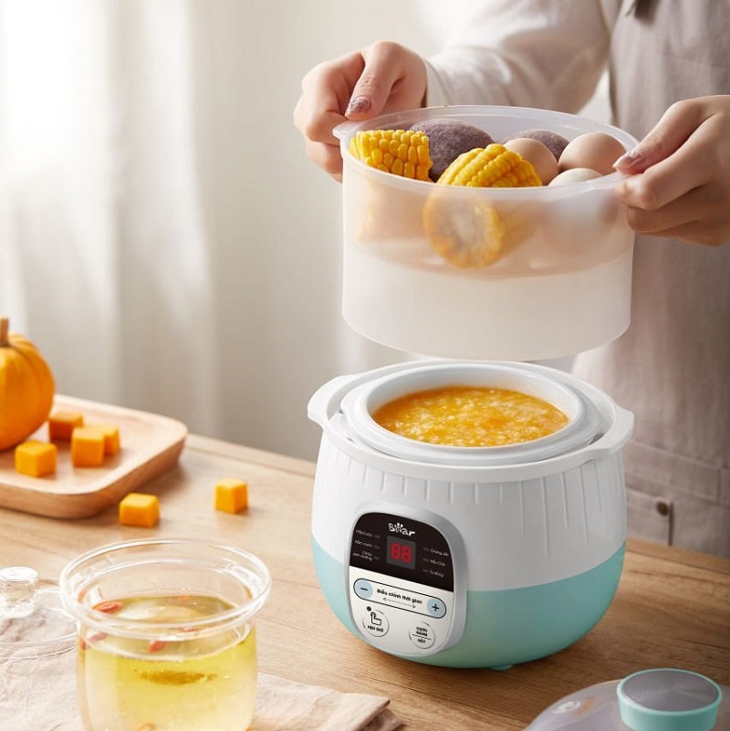 Không chỉ đảm nhiệt tốt việc nấu cháo, nồi nấu chậm Bear SUBE001 còn được trang bị tới 6 chức năng để bạn có thể chế biến nhiều món khác nhau như: hầm canh, nấu chè, hấp, luộc, chưng yến… Chính vì thế mà thiết bị này không chỉ phục vụ bữa ăn dặm cho bé mà còn phù hợp với người già, những đối tượng muốn tìm tới một giải pháp tiện lợi để bữa ăn hằng ngày thêm chất lượng.