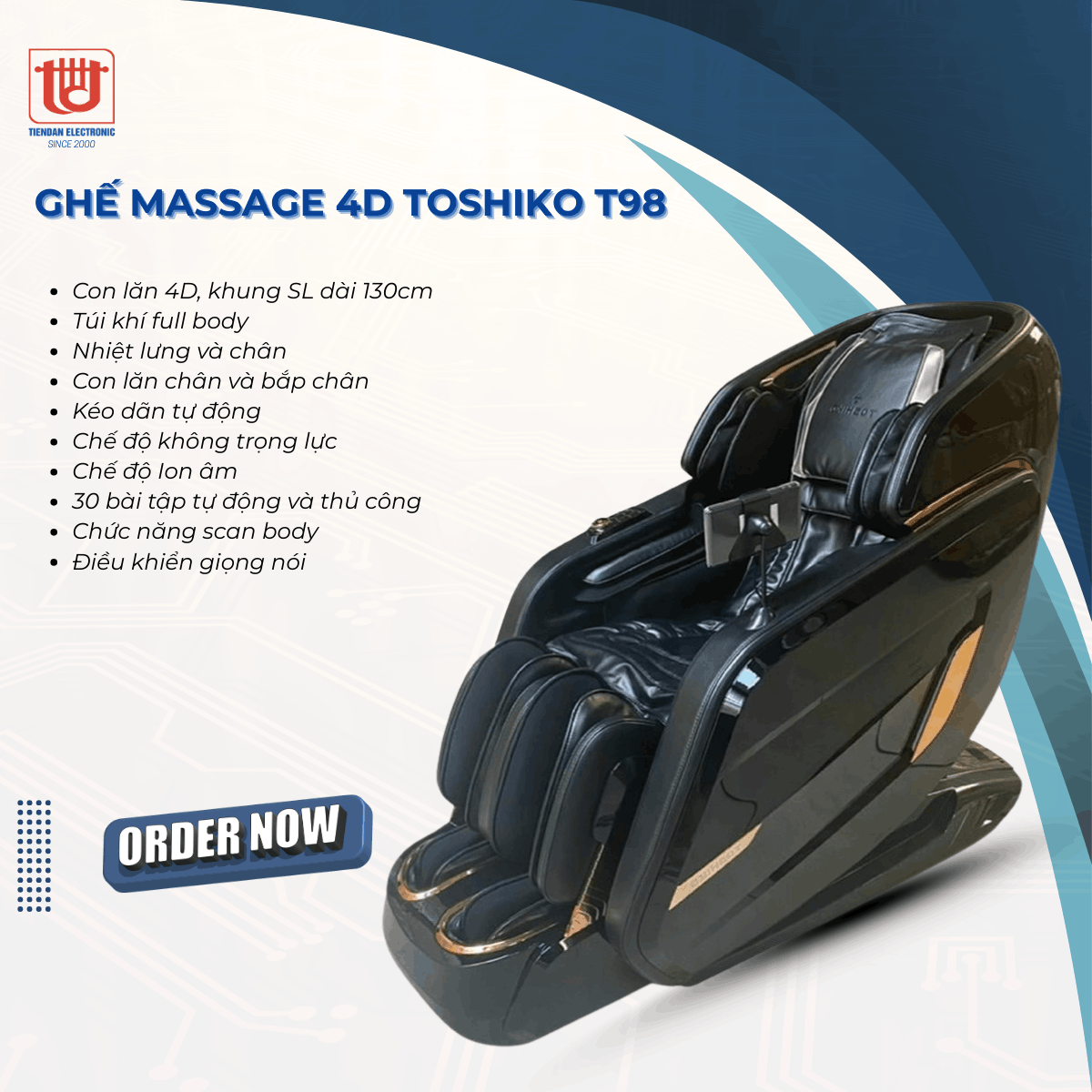 Bạn đang tìm kiếm một chiếc ghế massage vừa sang trọng, vừa được trang bị công nghệ hiện đại bậc nhất, lại chăm sóc cơ thể toàn diện từ đầu đến chân? Toshiko T98 chính là sự lựa chọn đáng giá cho sức khỏe và phong cách sống của bạn!